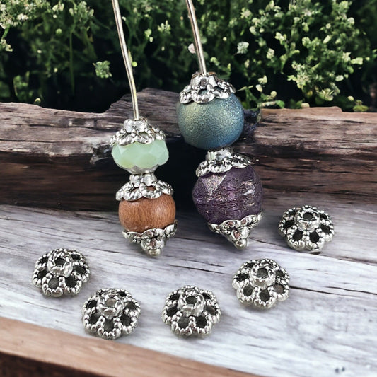 9mm Antiqued Silver Open Filigree Bead Caps, Victorian Style Oxidized Silver Plated Brass (DD22X) * Qty. 6