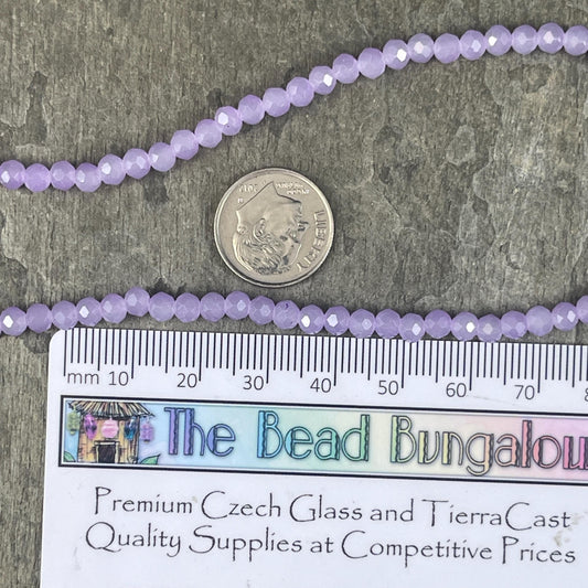 Pastel Purple 4x3mm Faceted Glass Beads, Milky Light Purple (PastelPurple-4) * 100 Beads