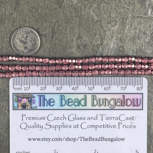 Czech Glass Beads -4mm Faceted Round Beads, Mauve Metallic, Blooming Dahlia ColorTrends (FP4/SM-05A07) * Qty. 50