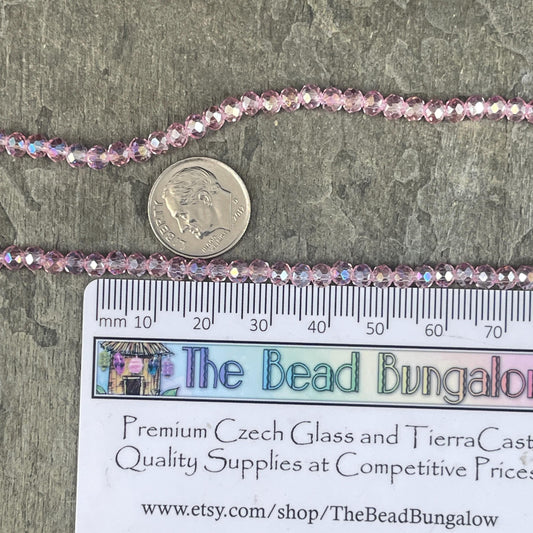 Transparent Pink 4x3mm Faceted Glass Beads, Light Rose with AB Finish (Lt.RosePink-4) * 100 Beads