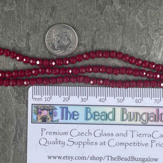 Opaque Ruby Red 4x3mm Faceted Glass Beads, Dark Red Glass Beads (OpaqueRuby-4) * 100 Beads