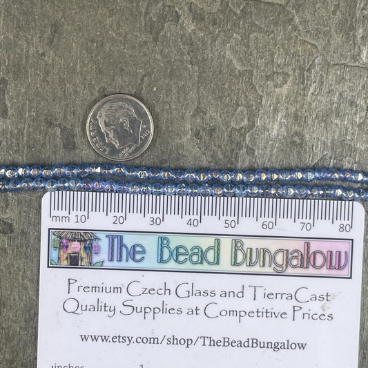 Czech Glass Beads - 3mm English Cut, Sapphire Blue with Luster Iris (EC/SM-LR3005) * Qty. 50