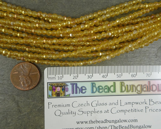 Golden Yellow Czech Glass Beads Topaz Luster Yellow Gold Spacer Beads 3mm Glass Beads - Topaz Luster English Cut (EC/SM-LR1006) * Qty. 50