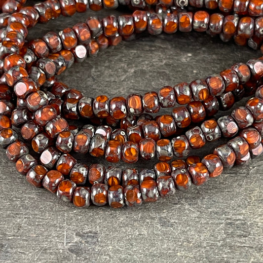 Pumpkin Orange Picasso Trica Beads ~ 4x3mm Faceted Czech Glass Seed Beads ~ Dark Orange Picasso Beads (TRICA/N-1197) * Qty. 50
