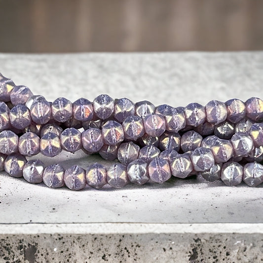 Czech Glass Beads - 3mm Milky Amethyst English Cut Beads - Amethyst Luster (EC3/SM-LR21010) * Qty. 50