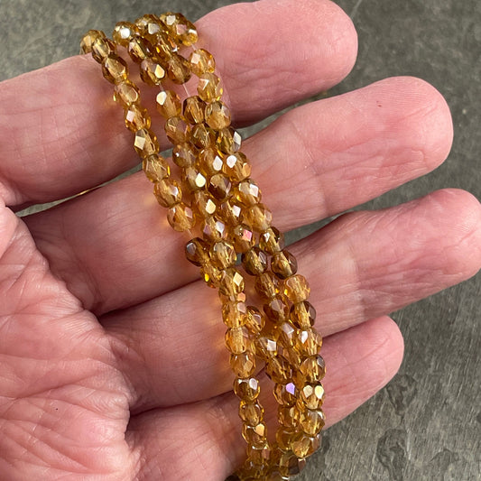 Czech Glass Beads - 4mm Honey Gold, Topaz Beads Faceted Round Beads - Twilight Topaz, Transparent Gold (FP4/SM-W1006) * Qty. 50