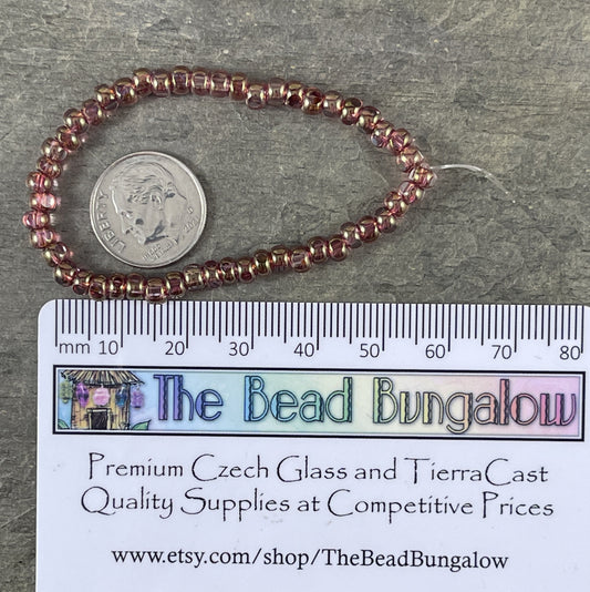 Czech Glass Beads Golden Fuchsia Faceted Seed Bead 4x3mm Transparent Fuchsia with Golden Luster Tri-cut Beads (TRICA/RJ-2630) * Qty. 50