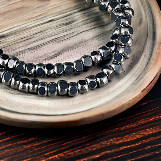 Dark Blue and Silver Tri-Cut Faceted Czech Glass Seed Bead - 4x3mm Faceted Seed Beads (TRICA/2776) * Qty. 50