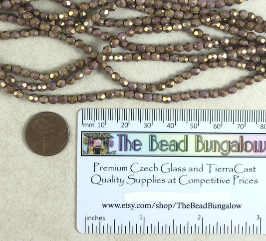 4mm Pink and Brown Czech Glass Faceted Round Beads - Smoky Rose Gold Picasso Beads (FP4/P15695.2) * Qty 50