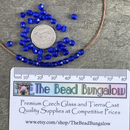 Small Cobalt Blue Beads 4mm Czech Glass Faceted Round Beads - Cobalt Blue Transparent Beads Czech Glass Beads (FP4/SM-3008) * Qty 50