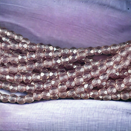 Czech Glass Beads - 4mm Light Lavender Luster Faceted Round Czech Beads ~ 4mm Czech Glass Beads ~ Pale Purple Luster (FP4/SM-L2004) * Qty 50