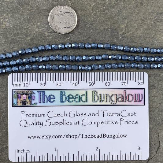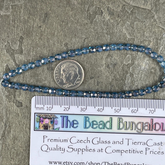 Blue Czech Glass Beads - 4mm Faceted Round Beads, ColorTrends Saturated Metallic Bluestone (FP4/SM-07B02) * Qty. 50