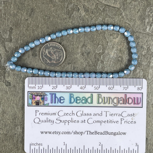 Czech Glass Beads - 4mm Opaque Slate Blue Luster Faceted Glass Beads (FP4/N-124) * Qty. 50