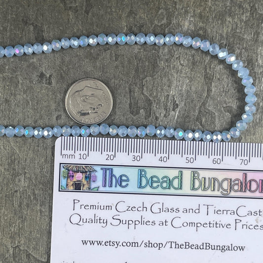 Light Blue 4x3mm Faceted Glass Beads, Pastel Blue with AB Finish (LtBlueAB-4) * 100 Beads