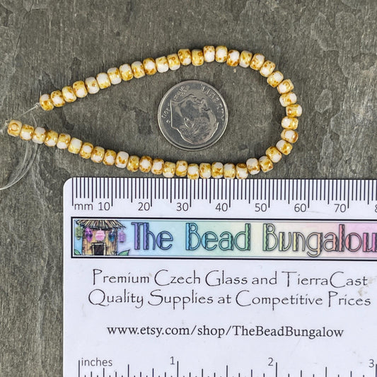 Czech Glass Beads - 4x3mm Tri-cut 6/0 Seed Bead, Ivory with Picasso (TRICA/N-1200) * Qty. 50
