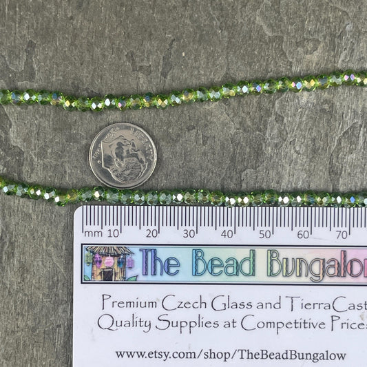 Transparent Green 4x3mm Faceted Glass Beads, Peridot Green with AB Finish (PeridotAB-4) * 100 Beads
