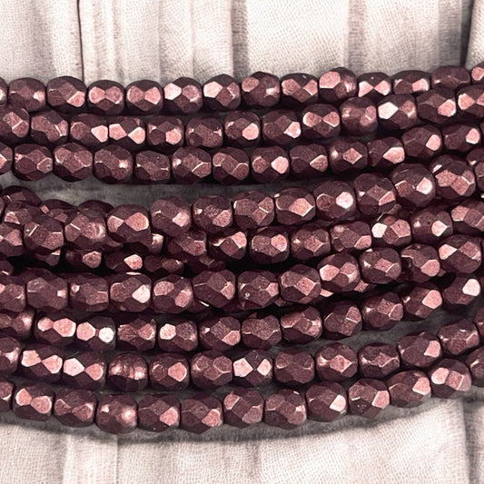 Matte Satin Brown Czech Glass Beads 4mm Fire Polished Beads 4mm Faceted Round Beads - Colortrends Chicory Coffee (FP4/SM-07B01) - Qty. 50