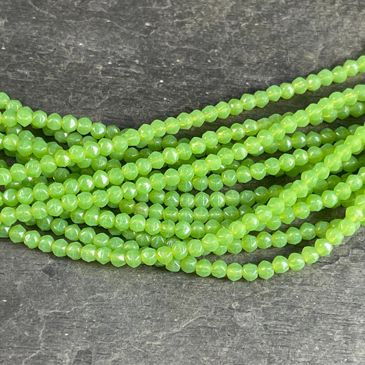 Czech Glass Beads - 3mm English Cut Beads - Milky Peridot, Lime Green Spacer Beads (EC3/SM-51010) * Qty. 50