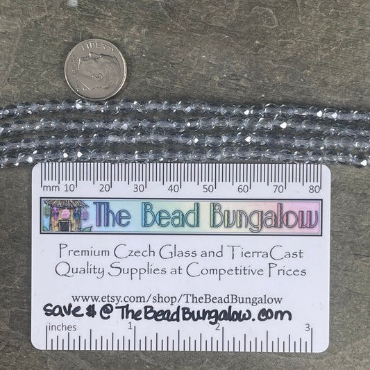 Light Sapphire Blue Czech Glass Beads, 4mm Faceted Round Beads, Blue Luster (FP4/SM-14464) * Qty. 50