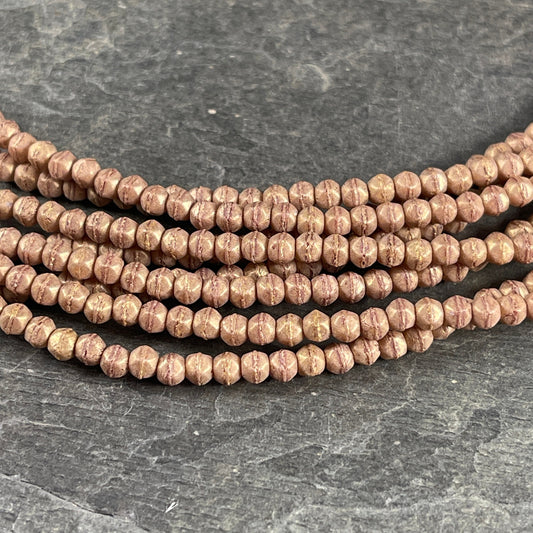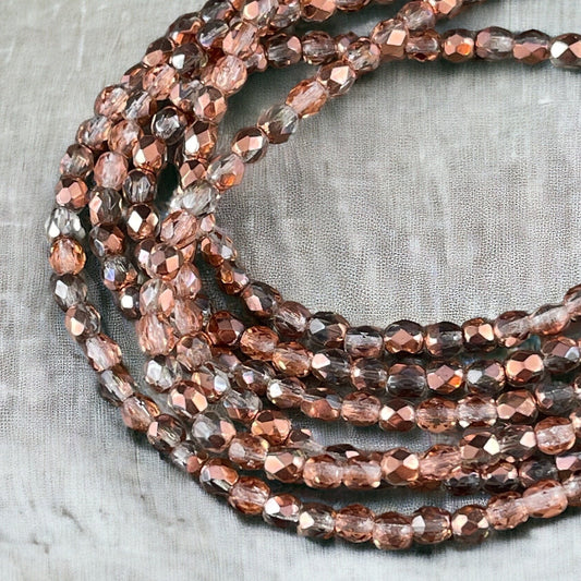 Czech Glass Beads - Rose Gold 4mm Faceted Round Beads - Coppery Pink Metallic Beads (FP4/SM-08A02) * Qty. 50