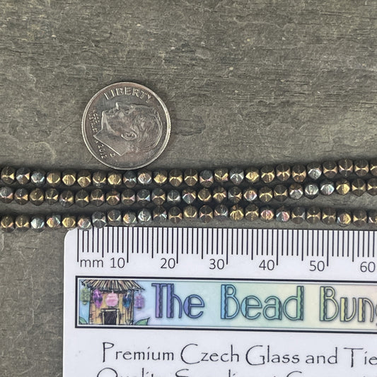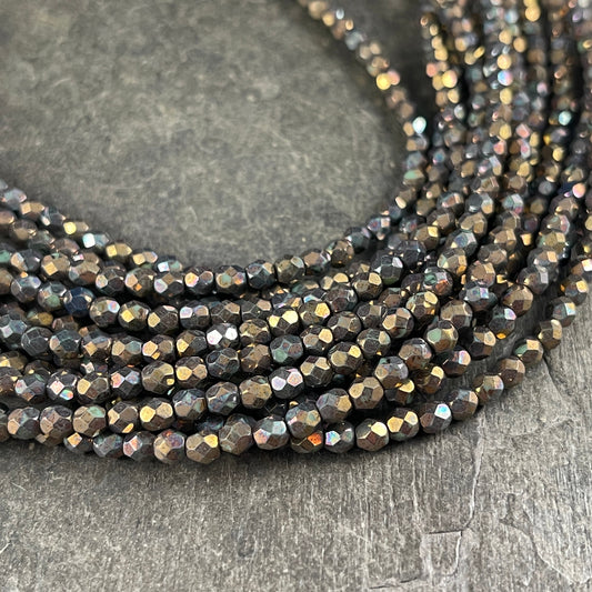 Czech Glass Beads - Oxidized Bronze Clay 4mm Metallic Faceted Round Beads - Bronze Iris Glass Beads (FP4/SM-15768) * Qty. 50