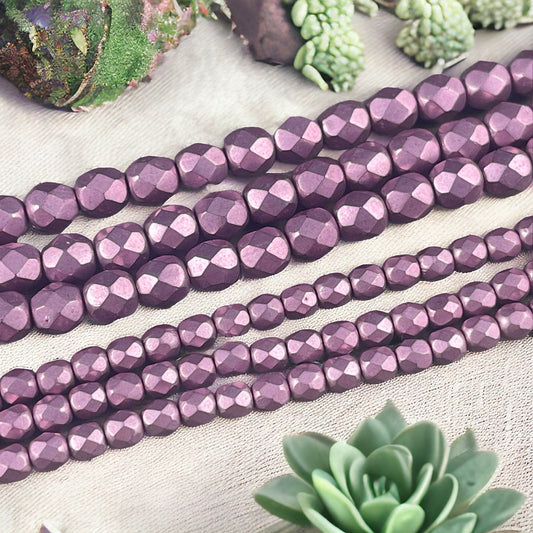 Purplish Pink Czech Glass Beads - 4mm Fire Polished Faceted Round Beads - Golden Orchid Pink Metallic Beads (FP4/SM-08A03) * Qty. 50