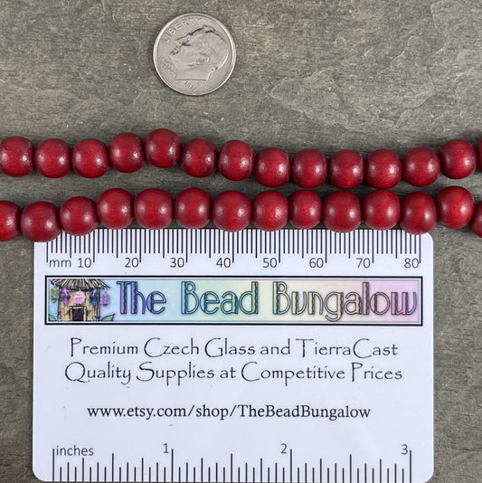 8mm Round Dark Red Wooden Beads, Mala Beads, Lightweight Wooden Beads - Cranberry Red Beads (9464) * 16" Strand