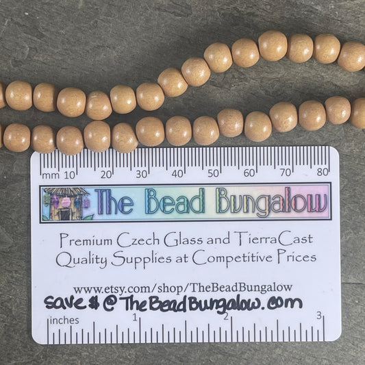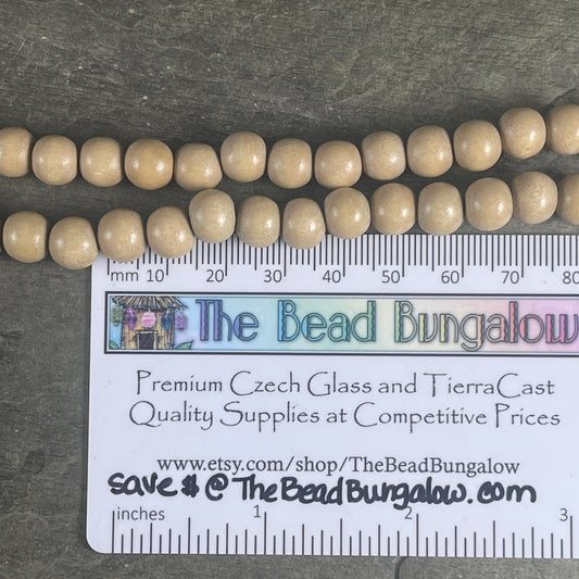 8mm Round Wooden Beads, Natural Light Wood Color Beads, Lightweight Wooden Beads, Beige Wood Beads (9459) * 16" Strand