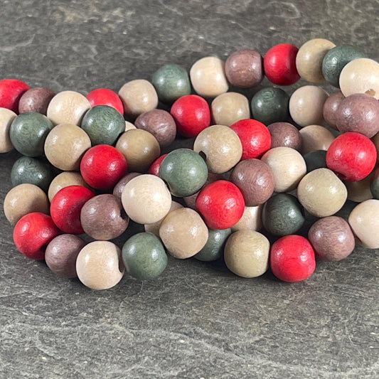 8mm Round Wooden Bead Custom Mix, Brown, Tan, Gray/Green, Dark Orange and Off-White, Lightweight Wooden Beads * 40 Beads