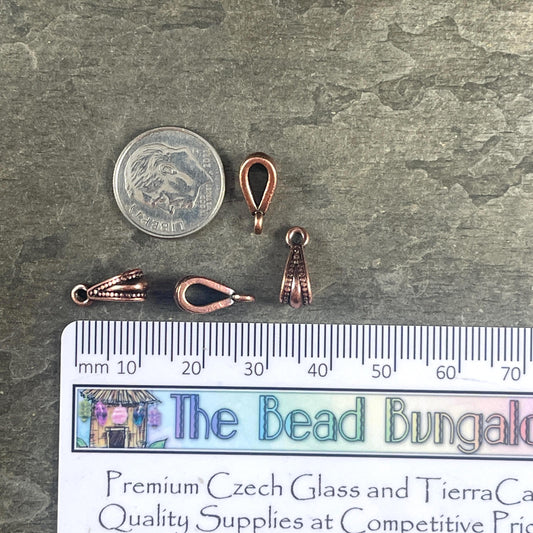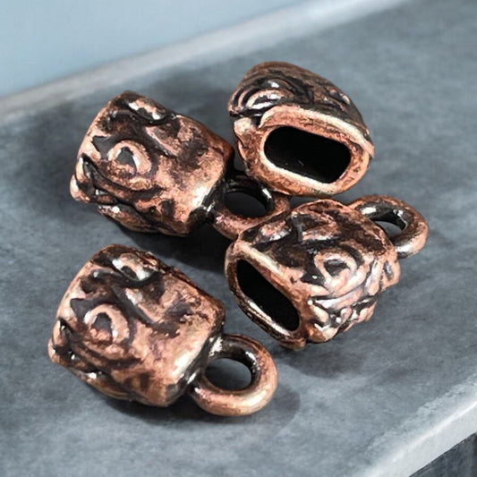 TierraCast Royal Bail, 13mm Bail with Loop, Classic Loop Bail with Dots, Antiqued Copper Plated Pewter (PF/803-87) * Qty. 4
