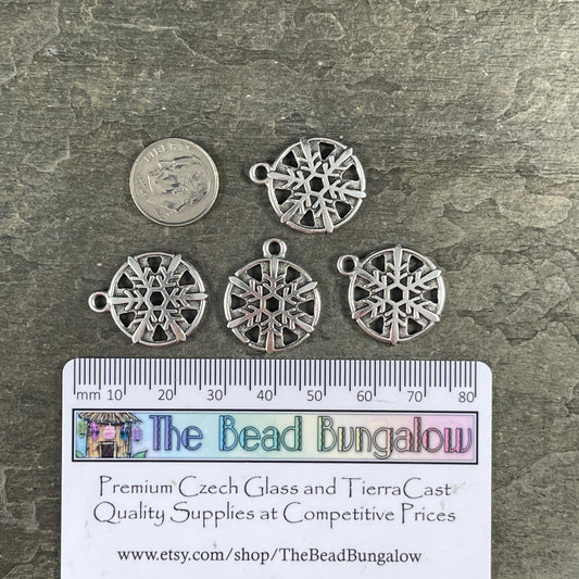 TierraCast Silver Snowflake Charms, 23.5x19.5mm Antiqued Silver Double Sided Charm (PF/528-77) * Qty. 4