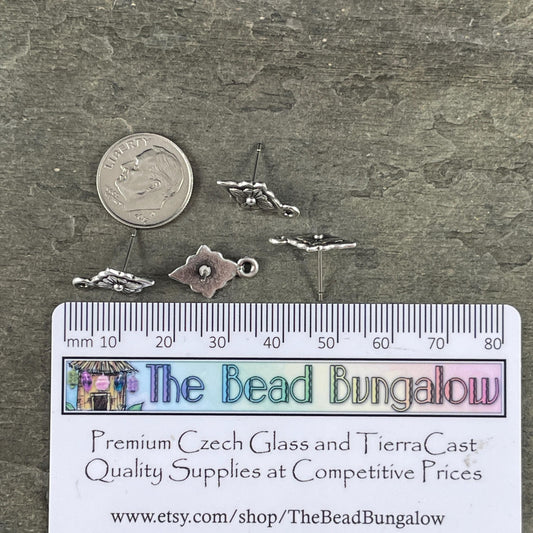 TierraCast Reina Earring Post, Antiqued Silver Diamond Shaped, Floral Theme Titanium Post Earring (PF/428-77) * Qty. 4