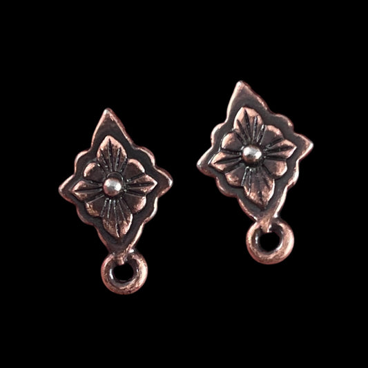 TierraCast Reina Earring Post, Antiqued Copper Diamond Shaped, Floral Theme Titanium Post Earring (PF/428-87) * Qty. 4