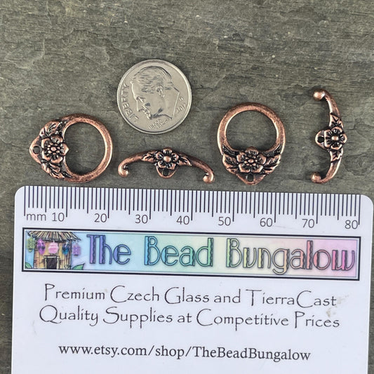 TierraCast Floral Toggle Clasp Large Copper Toggle, Nature Theme Antiqued Copper Clasp (PF/968-87) * Qty. 2