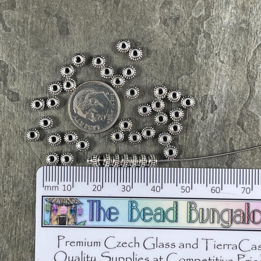 TierraCast 5mm Bead with Coil Rope Trim, Antiqued Silver Spacer Beads (PF/783-77) * Qty. 20