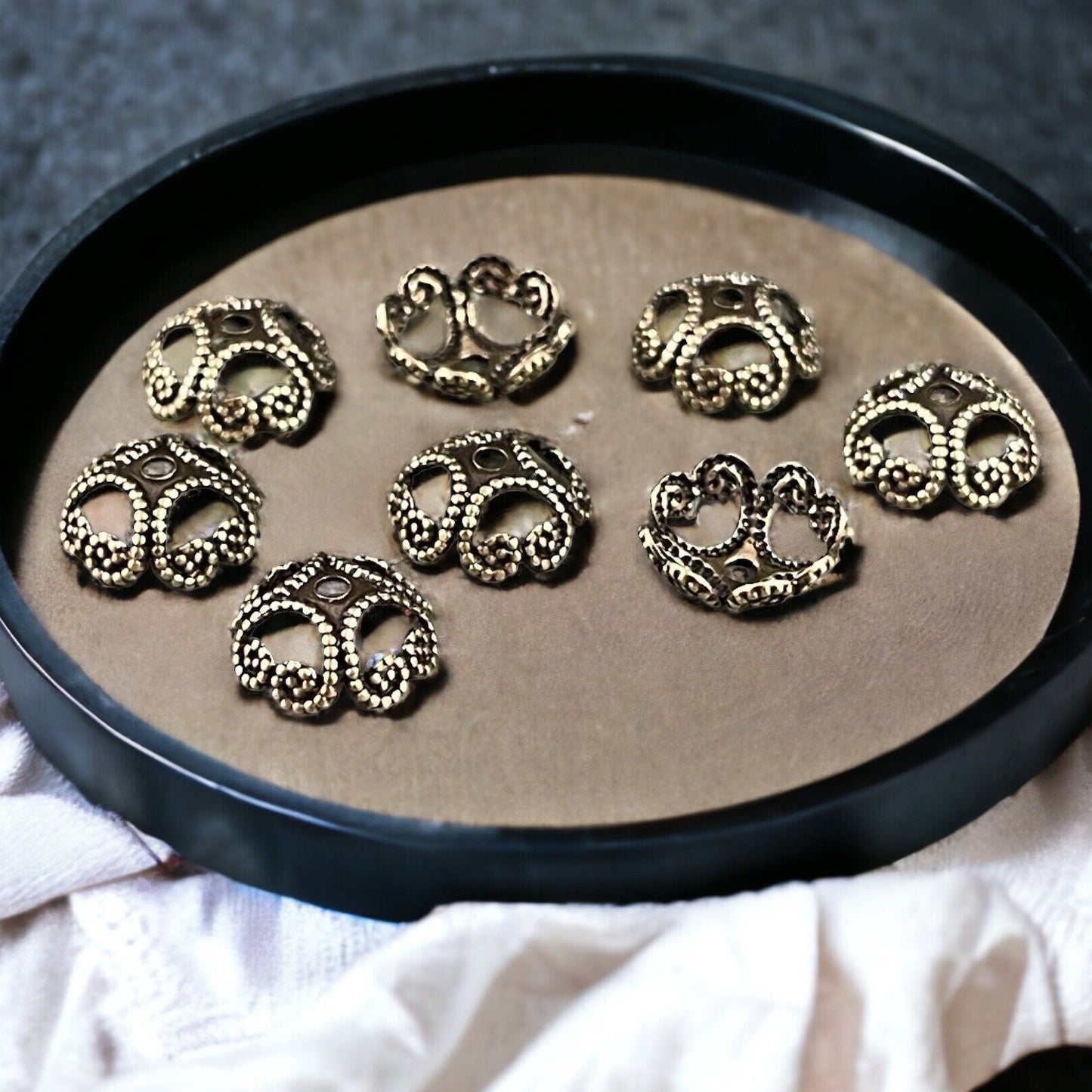 8mm Oxidized Brass Open Filigree Bead Caps ~ Victorian Style Antiqued Gold Bead Caps (VJS-R04) *