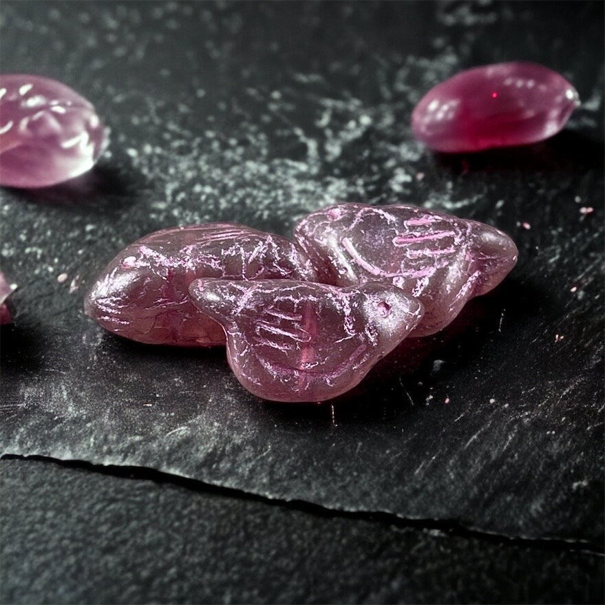 Czech Glass Beads - 11x22mm Chunky Bird Beads, Matte Rosewood with Pink Wash, Nature Theme, Bird Focal (N-1614) * Qty. 4