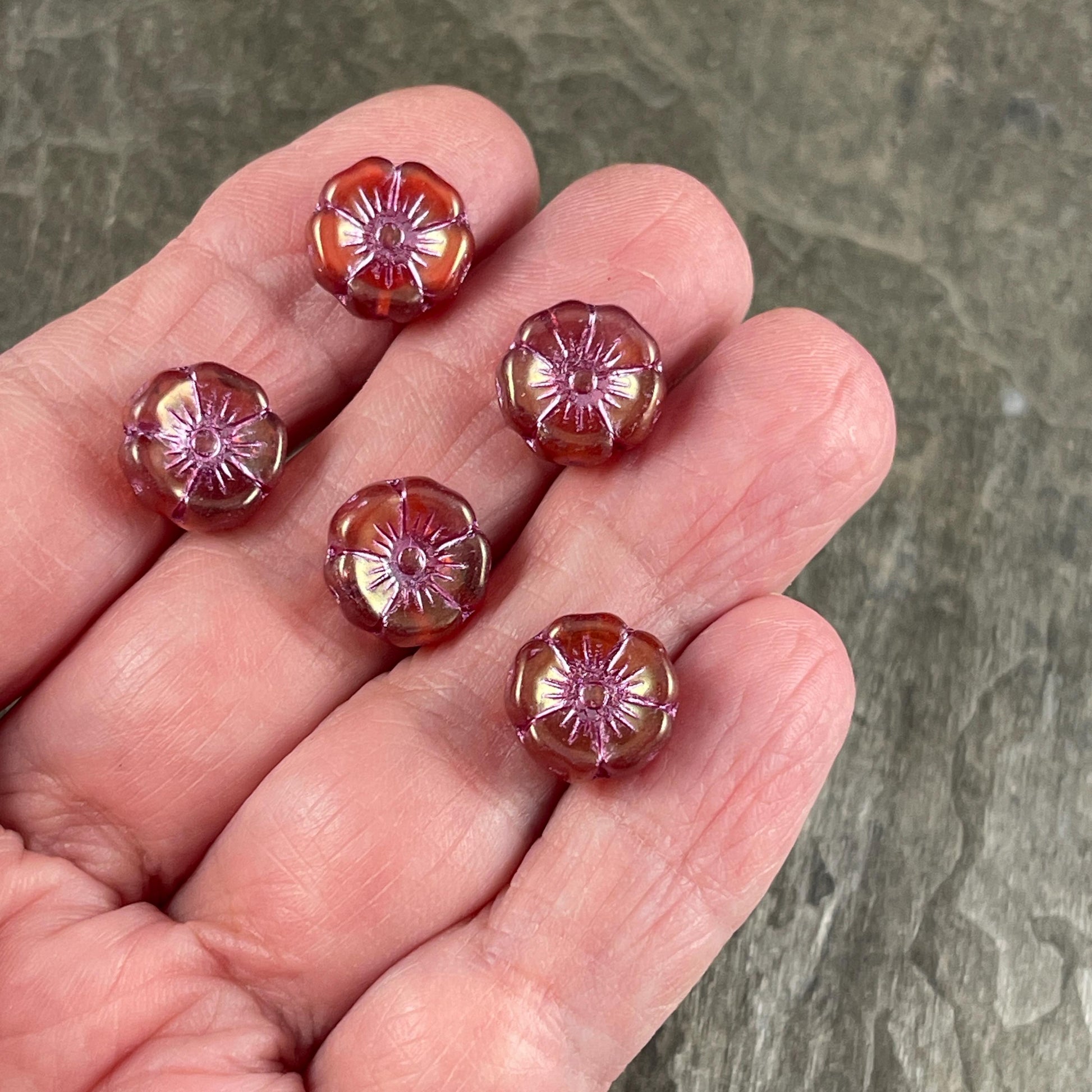 Fuchsia Pink Czech Glass Flower Beads, 12mm Hibiscus Flower, FL12/N-1366) * Qty. 6