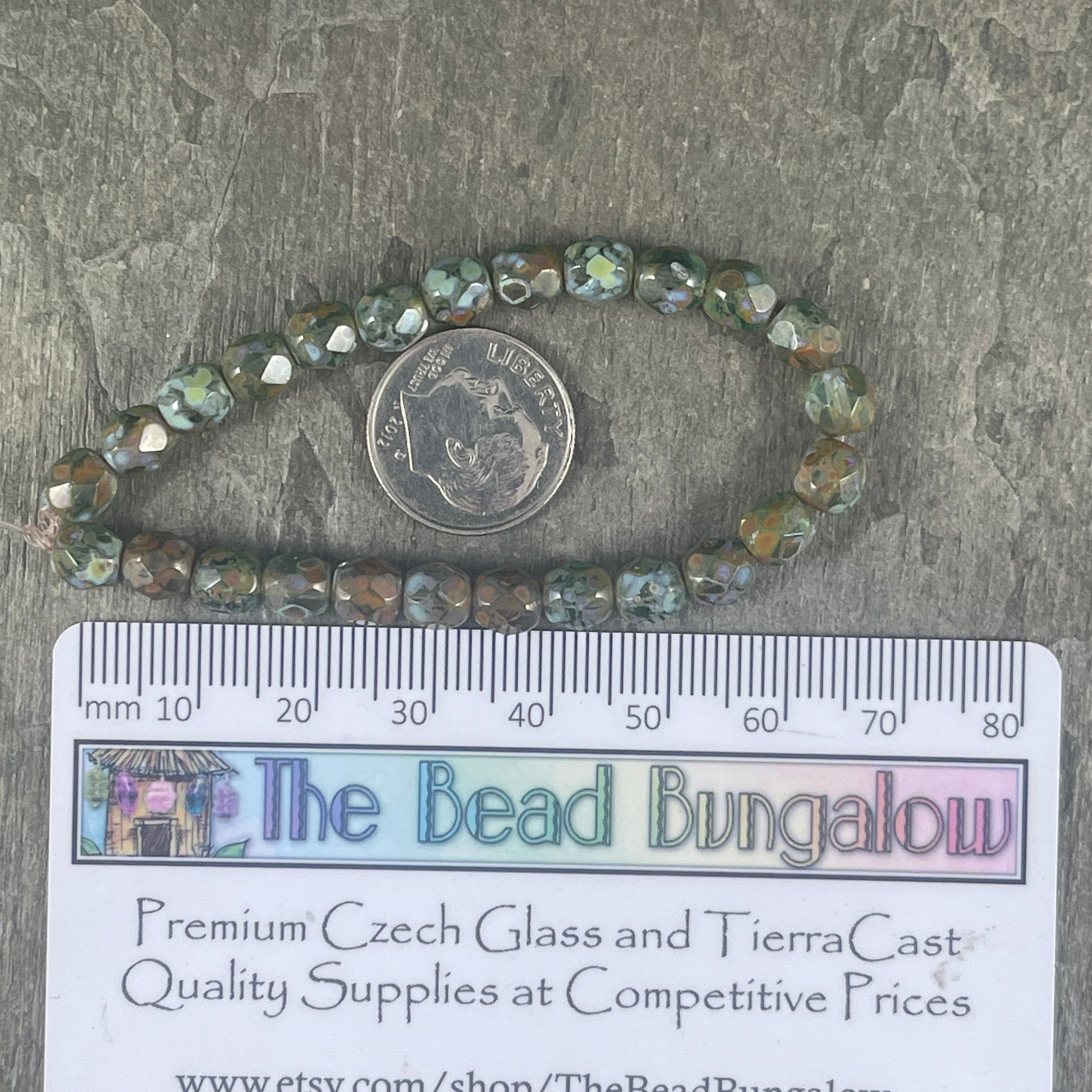 Czech Glass Beads, 6mm Olive Green with Full Picasso Finish (FP6/N-145B) * Qty. 25