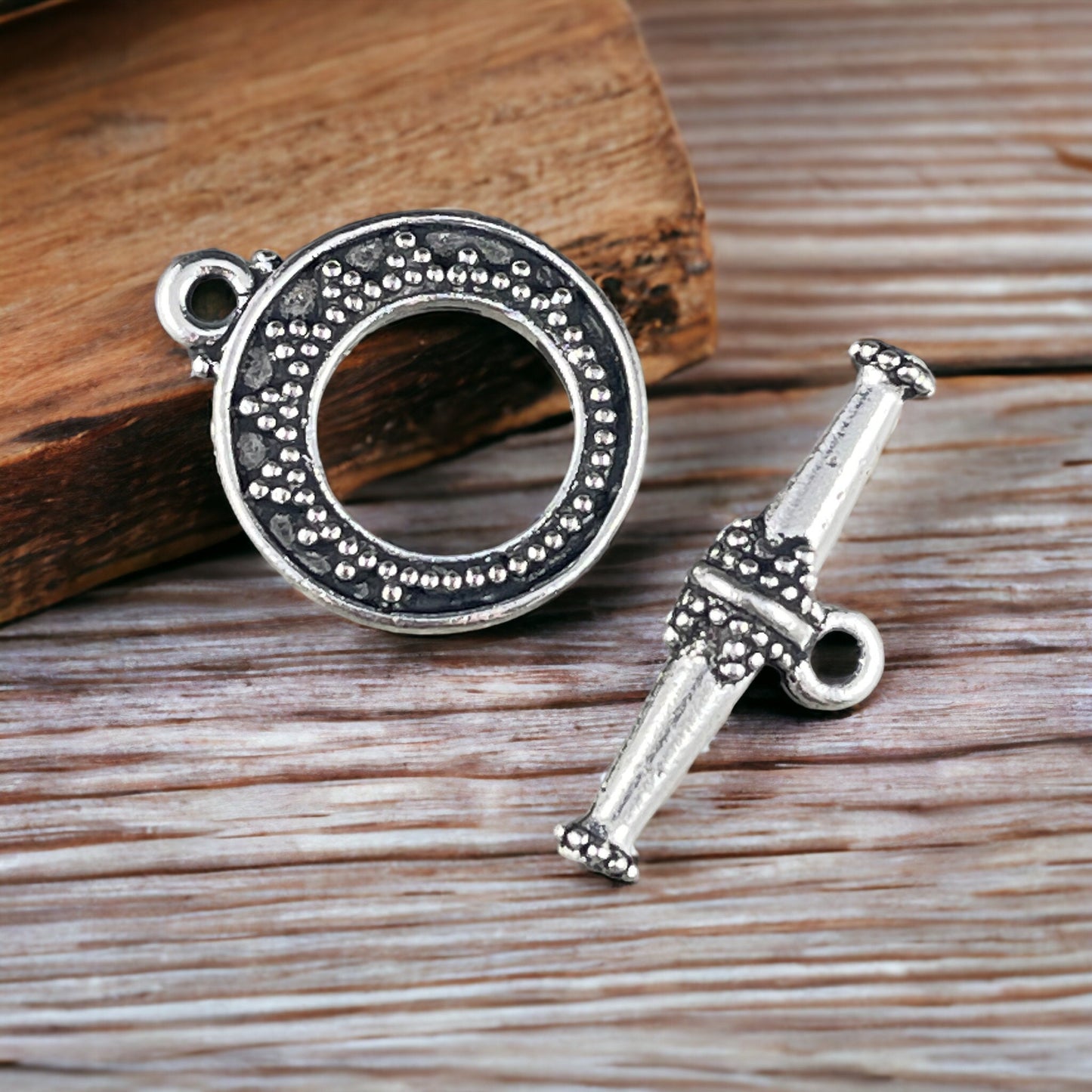 Silver Toggle Clasp by TierraCast, Antiqued Silver Clasp, TierraCast Tappered Bali Toggle Clasp, Medium Size Clasp (TC/6088-12) * Qty. 2