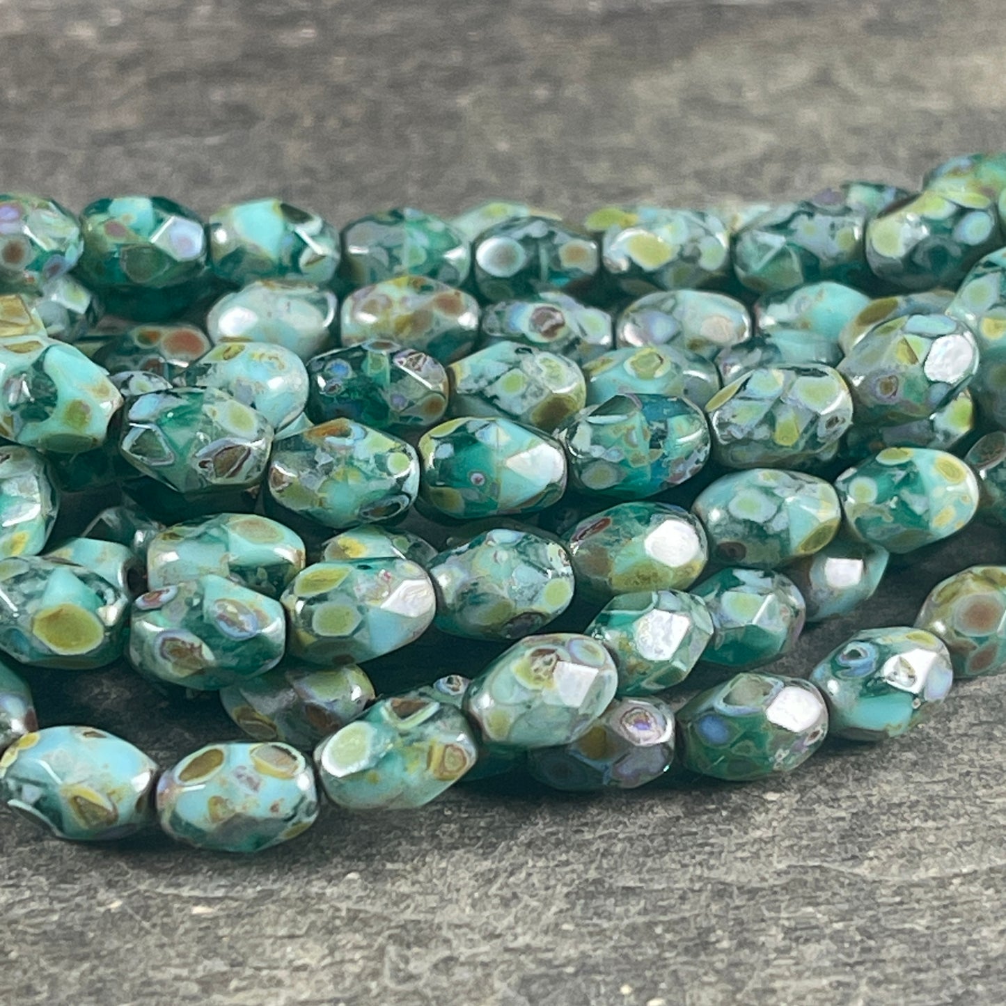 Turquoise, Capri Blue and Emerald Green 7x5mm Faceted Oval, Multi-colored Czech Glass with Picasso Finish (FOV/N-0601) * Qty. 20